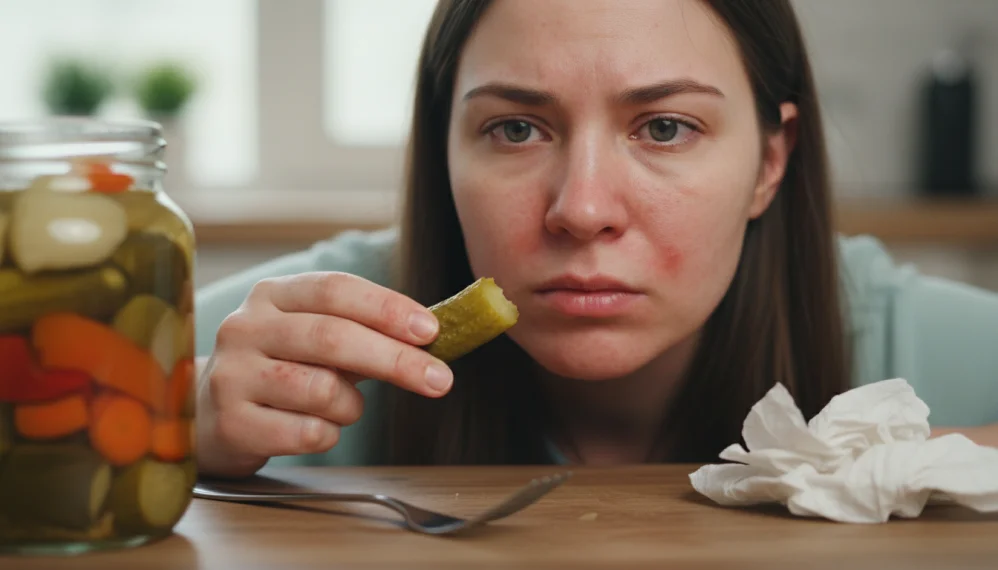 Muraturile si otetul sunt surse alimentare care contin mucegaiuri ce pot provoca reactii alergice la unele persoane. Pastrarea unui jurnal alimentar si observarea simptomelor poate ajuta medicul sa identifice cauza alergiei.