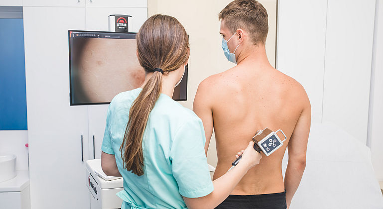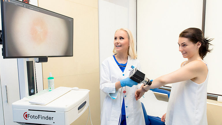 In prezent, din fericire, putem vorbi despre o evolutie semnificativa in ceea ce priveste depistarea precoce a bolii, in clinica Skinmed avem pacienti pe care ii monitorizam cu succes pe toata suprafata corpului de peste 7 ani. De ce? Pentru ca melanomul apare doar in unul din cinci cazuri pe leziuni preexistente, restul oriunde pe piele. De aceea avem nevoie de supraveghere periodica, o data pe an, de scanarea totala a corpului, un screening realizat cu cel mai performant detector – Fotofinder, harta dermatoscopica – dispozitiv care fotografiaza fiecare cm de piele. Noi, ca medici, dorim sa depistam leziunile microscopice, nu macroscopice, adica atunci cand pacientul poate observa singur, cu ochiul liber, schimbarea dimensiunii, culorii, conturului sau suprafetei alunitelor.