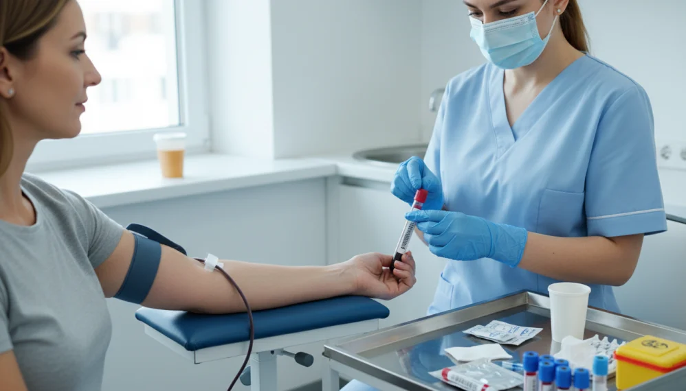 Recoltarea produselor biologice pentru analize (recoltarea urinei, a sangelui, a materiilor fecale, a secretiilor)