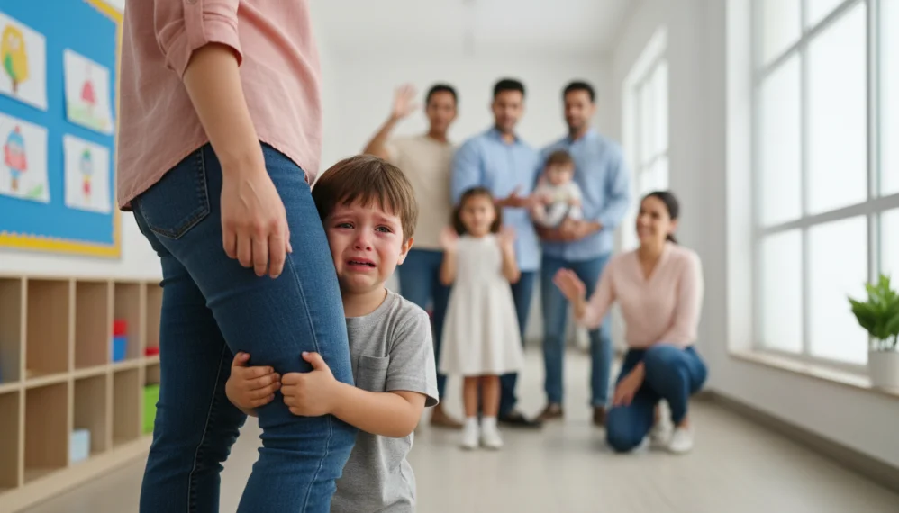 Indiferent daca parintele pleaca in camera alaturata pentru cateva secunde, lasa copilul cu bona pe perioada serii sau il lasa la cresa, reactia va fi aceeasi: copilul plange, se agata de parinte si nu acorda atentie incercarilor celorlalti de a-l linisti.