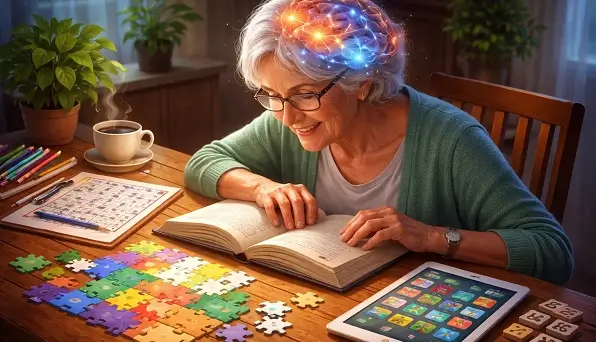 Stimularea cognitiva prin activitati intelectuale — precum cititul, invatarea unor abilitati noi, jocurile de logica sau implicarea sociala activa — ajuta la mentinerea rezervelor cognitive si la intarirea conexiunilor neuronale.