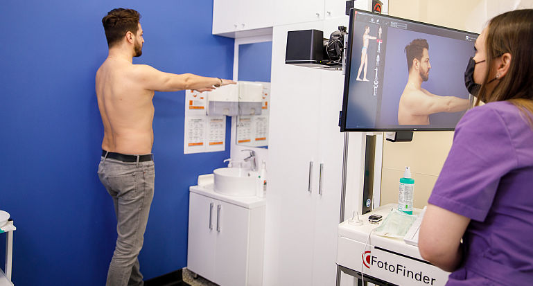 Scanarea (Harta) intregii suprafete cutanate FotoFinder ATBM MASTER inseamna analizarea tuturor leziunilor de pe tot corpul. Astfel, se pot studia toate leziunile cutanate ale