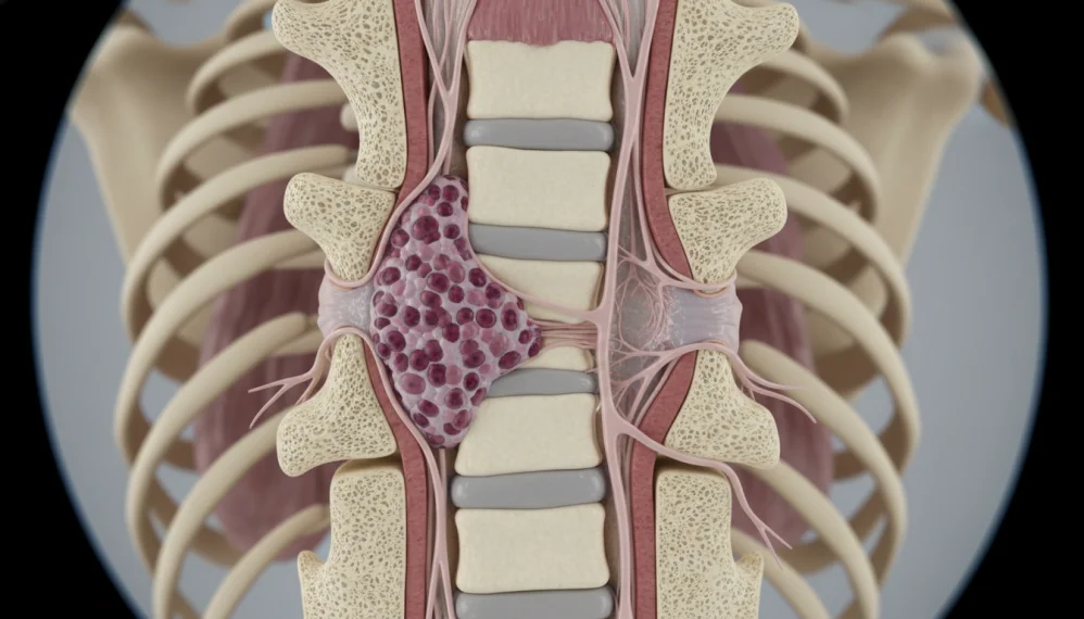 Manifestarile clinice varaiza in functie de localizarea si de tipul tumorii, intrucat o tumora poate ajunge sa comprime nervii, sa erodeze vasele de sange sau chiar si vertebrele.