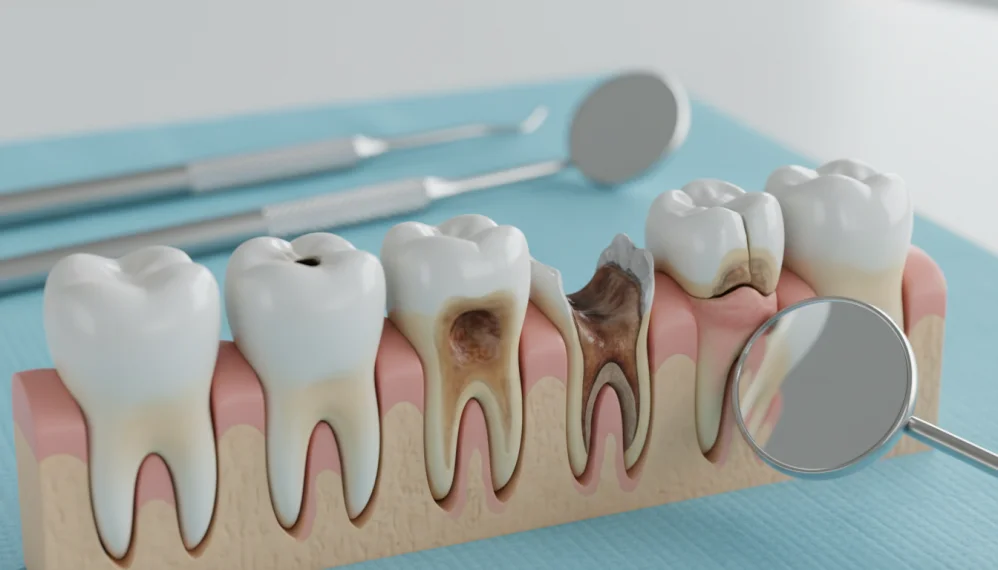 Daca nu reusim sa detectam cariile in stadiu incipient, atunci acestea evolueaza pana cand afecteaza nervul dintelui.