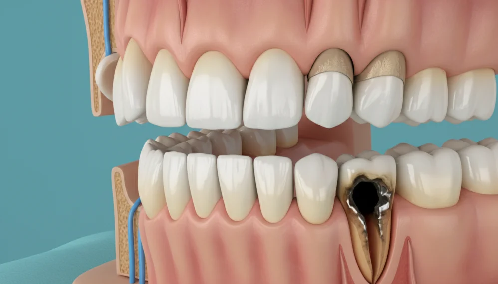 - persoana respectiva a pierdut in timp unul sau mai multi dinti iar dintii restanti au migrat ducand la aparitia unui dezechilibru ocluzal. De aceea este bine ca toate edentatiile sa fie protejate la timp.