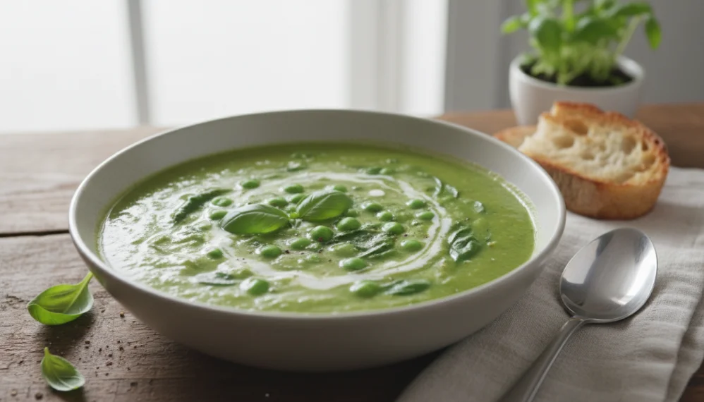 Supa de mazare cu spanac este o reteta bogata in fibre si substante nutritive necesare pentru stimularea tranzitului intestinal lent si combaterea constipatiei: