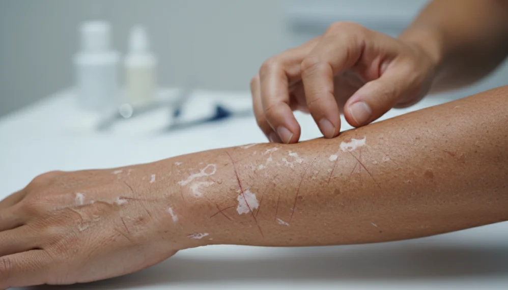 5. Deseori pe pielea afectata se dezvolta dermatita atopica, dermatita de contact sau psoriazis.