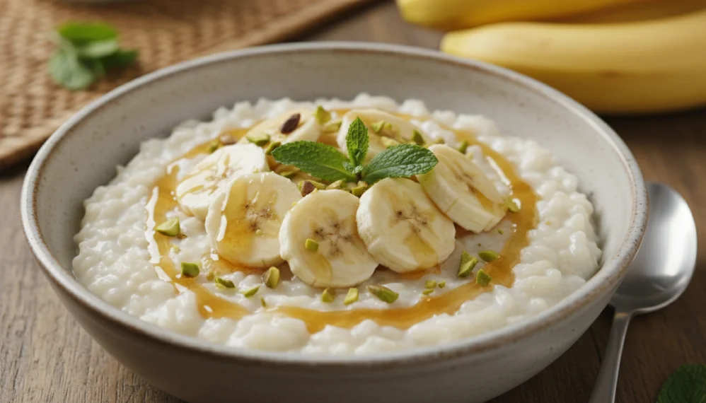 Orez cu lapte, banane si nectar de agave