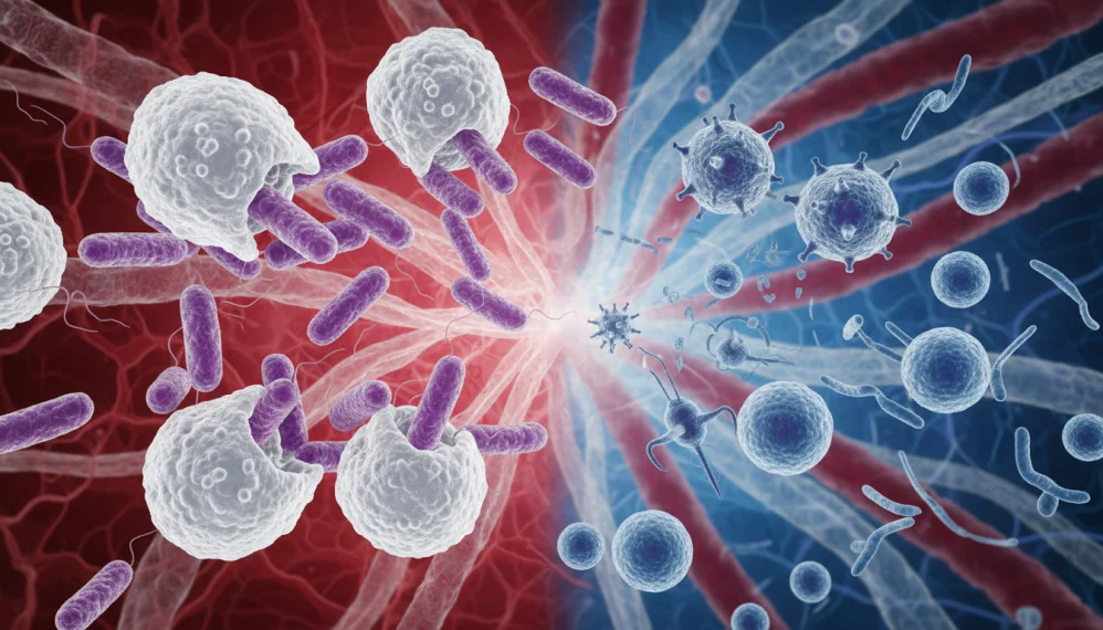 Infectiile virale si bacteriene pot cauza simptome similare, precum tusea, stranutul, febra, inflamatiile, varsaturile, diareea, oboseala accentuata si crampele abdominale. Toate aceste manifestari clinice apar in timp ce sistemul imunitar incearca sa elimine din corp organismele infectioase.