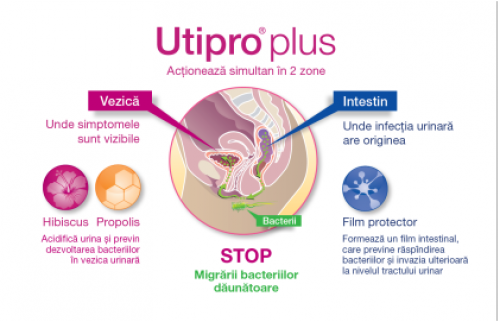 Astfel Utipro plus este un produs inovativ, cu actiune simultana in doua zone- in primul rand la nivel intestinal unde infectia urinara are originea si secundar in vezica urinara unde simptomele sunt vizibile