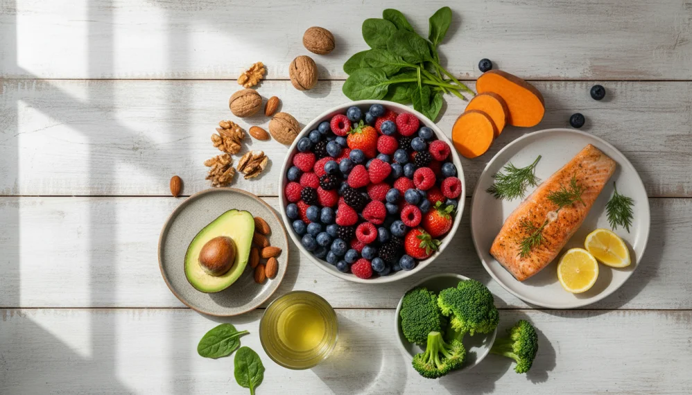 De exemplu, fructele bogate in vitamina C, precum portocalele si kiwi, stimuleaza productia de colagen, esential pentru fermitatea pielii, in timp ce legumele cu frunze verzi, bogate in vitamina A si K, ajuta la reducerea inflamatiilor si la uniformizarea tenului.