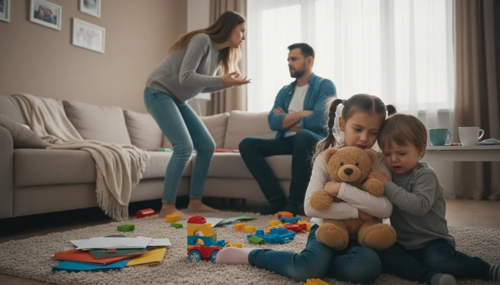 In situatia in care copiii au fost nevoiti sa participe la o disputa in familie, ambii parinti ar trebui sa discute cu ei si sa le explice ca in viata de adult pot aparea anumite probleme.
