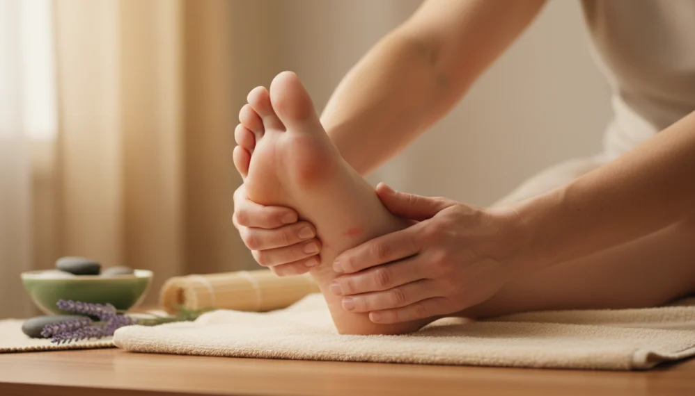 3. Picioare - Presarea mai multor puncte de la nivelul picioarelor amelioreaza tensiunea din diverse zone ale corpului