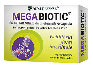 MEGA BIOTIC are eliberare prelungita si rezistenta la aciditatea gastrica, asigurand supravietuirea probioticelor pana in intestine. MEGA BIOTIC garanteaza 20 miliarde UFC si cel mai mare numar de tulpini probiotice - 15 tulpini lactice benefice care maresc spectrul afectiunilor care pot fi combatute + zinc, pentru intarirea imunitatii.