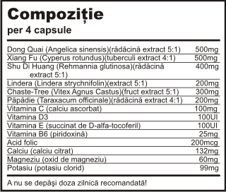 | 4 capsule/zi inainte de micul dejun cu 10 zile inaintea menstruatiei si se continua 2-3 zile dupa inceperea acesteia sau conform recomandarii consultantului de specialitate. Se pot administra pana la 6 capsule/zi. |